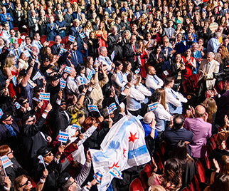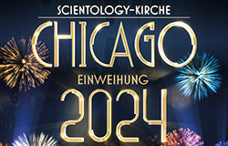 „All das bringt uns zu unserem endgültigen Bestimmungsort heute Abend und zu einer majestätischen Stadt, wo die Skyline die Wolken küsst“, verkündet Mr Miscavige. Danach verblassen die Lichter und der Hip-Hop-Beat des letzten Ideale-Org-Videos – Chicago – bringt das Shrine zum Beben.