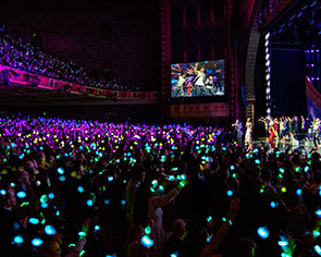 Von einem Augenblick auf den nächsten brach das Shrine in eine Flut feierlichen Lichts und Musik aus. Das Publikum sprang auf seine Beine und setzte sich während des Eröffnungskonzerts mit einer Reihe internationaler Künstler nicht wieder.