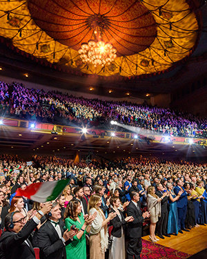 Eine Flut feierlichen Lichts und Musik erfüllt das Shrine und gibt dem Abend mit einem kraftvollen Eröffnungskonzert den Startschuss. Das Publikum springt auf die Beine für Aufführungen des legendären Komponisten und Arrangeurs David Campbell, des Musikers und Grammy-Gewinners Mark Isham und einer Reihe international begehrter Künstler.