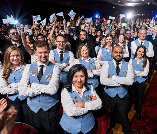 Eine Rekordzahl von Field Staff Members aus aller Welt treten auf die Bühne. Jeder von ihnen wurde dafür bestätigt, dass er in einem einzigen Jahr mindestens 100 Personen auf der Brücke zur völligen Freiheit willkommen geheißen hat.