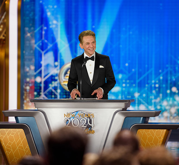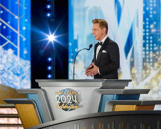 Mr Miscavige beginnt die Veranstaltung und schließt das Buch eines beispiellosen Jahres und startet in eine Zukunft grenzenloser Horizonte im Jahr 2024.