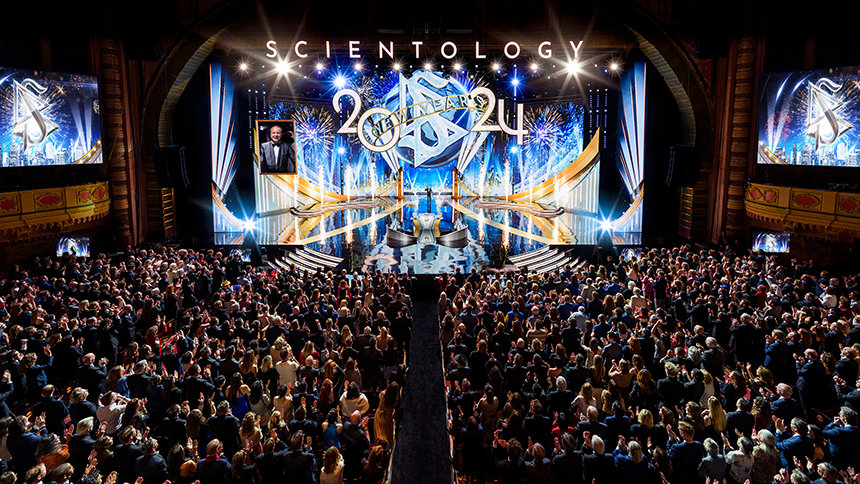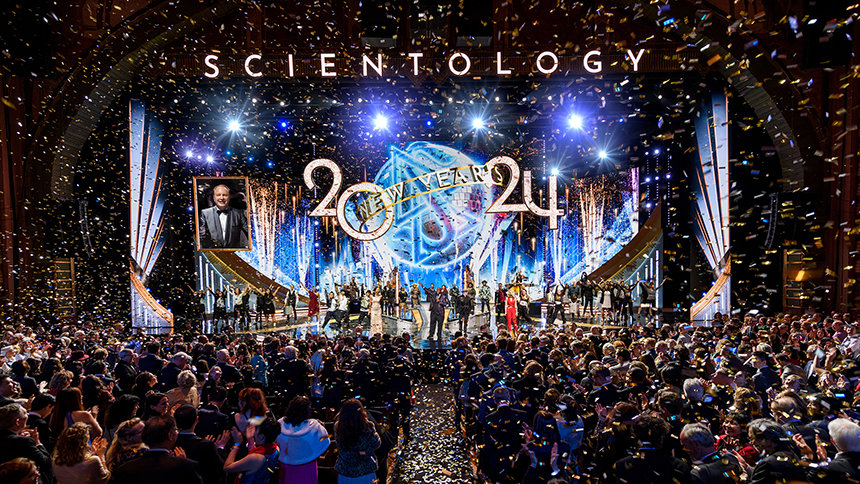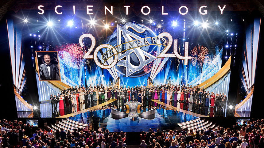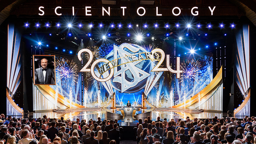 „Traditionsgemäß ist unsere Neujahrsveranstaltung der Abend, an dem wir uns die verschiedenen Sektoren der Tech von L. Ron Hubbard in Anwendung ansehen“, begann Mr Miscavige. Nach einer packenden Vorschau auf das, was für den überwältigenden Abend vor ihnen lag, fügte er hinzu: „Wir stoßen nicht nur auf ein vergangenes Jahr an. Vielmehr entzünden wir festen Raketentreibstoff und blasen das Dach direkt von diesem Auditorium, während wir in das Neue Jahr 2024 abheben!“