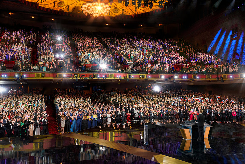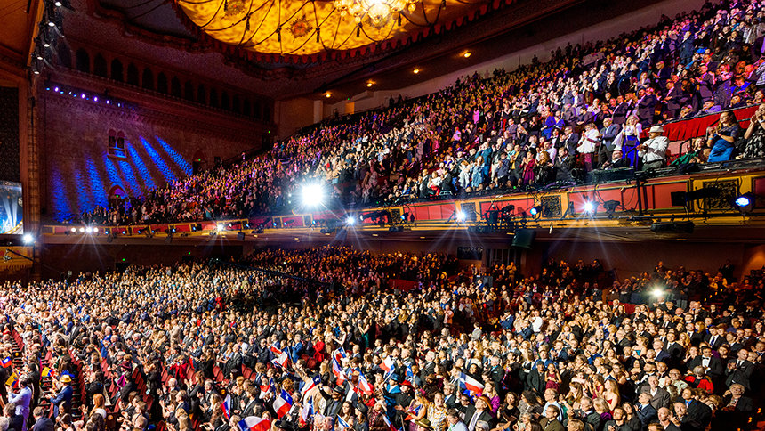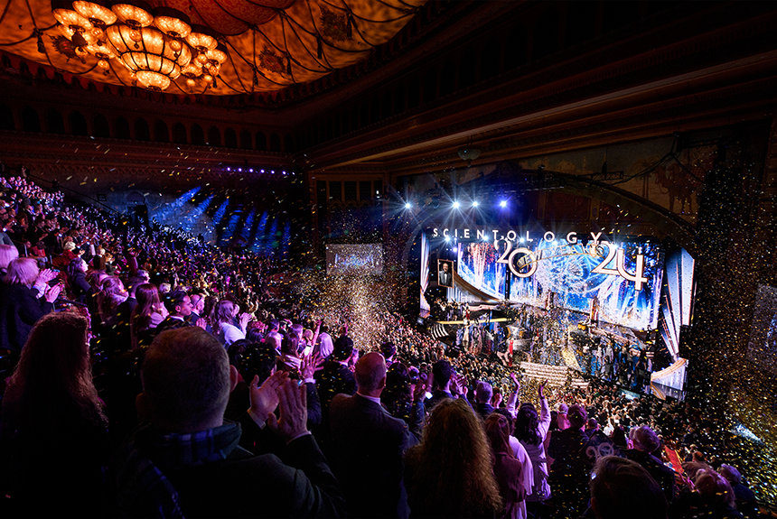 Die Pracht des Shrine Auditoriums in Los Angeles war der Rahmen für einen eleganten und aufregenden Abend, an dem über 6500 Scientologists und Gäste für die spektakuläre Scientology-Neujahrsfeier zusammenkamen.